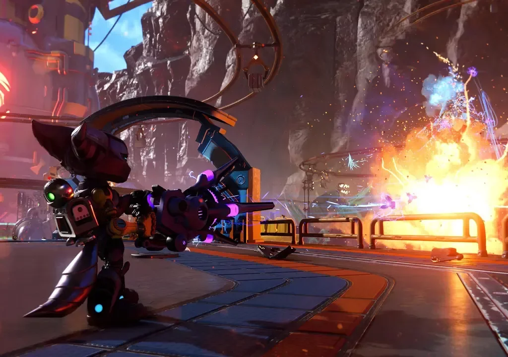 گیمپلی Ratchet & Clank: Rift Apart ترکیبی از اکشن سریع، پلتفرمینگ، اکتشاف و معماهای فضایی است. بزرگترین نوآوری این نسخه، امکان جابهجایی آنی بین دنیاهای مختلف از طریق پورتالهای ابعادی است که بدون هیچ زمان بارگذاری انجام میشود — قابلیتی که تنها به لطف SSD فوقسریع پلیاستیشن ۵ ممکن شده است.